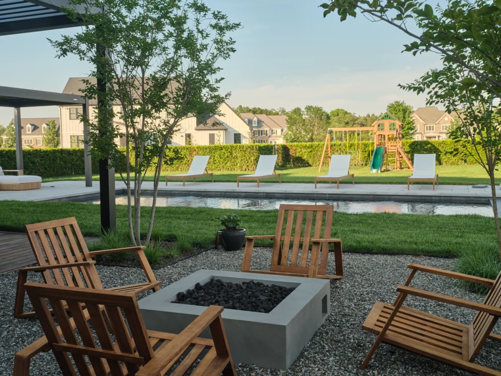 Backyard landscape design, outdoor living design, and cohesive hardscape layouts.