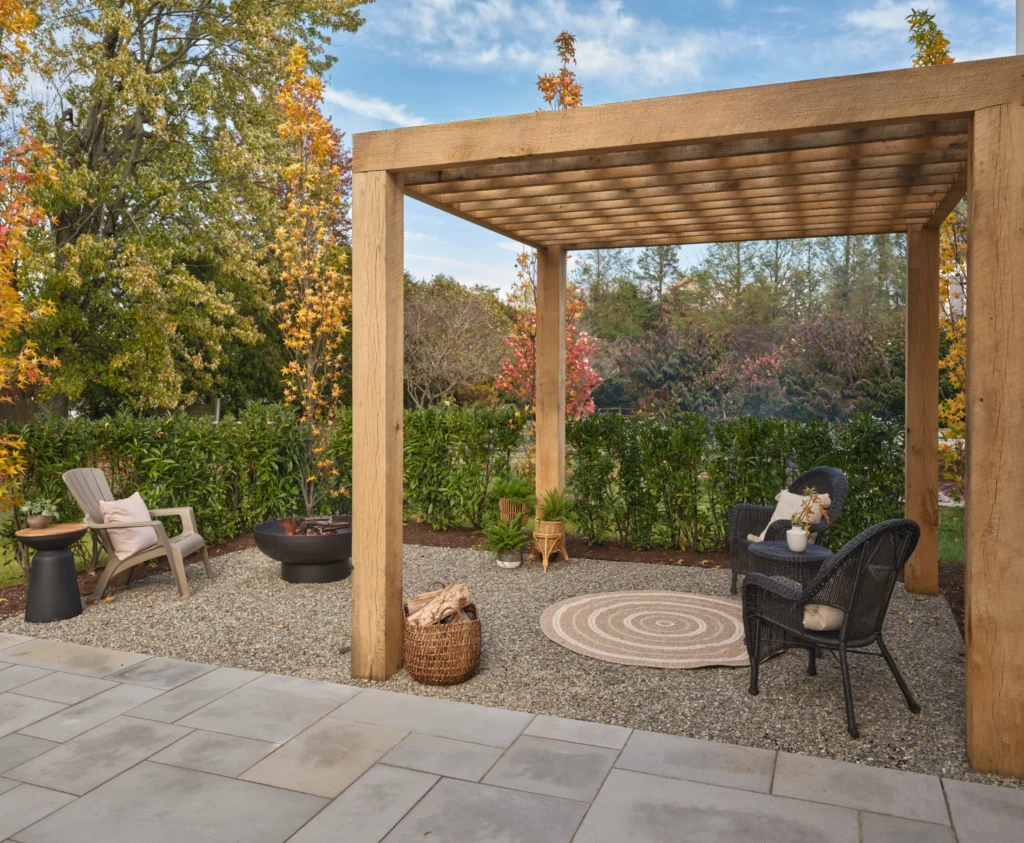 Hardscape is the backbone of any outdoor space. In smaller areas, materials should create a cohesive look and reduce visual clutter.