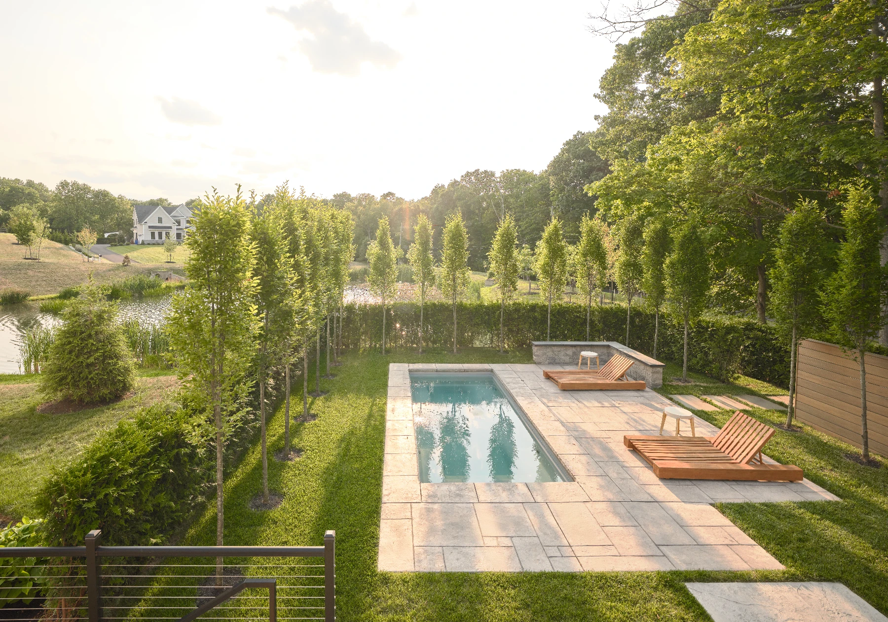 - Large-format pavers to minimize joint lines